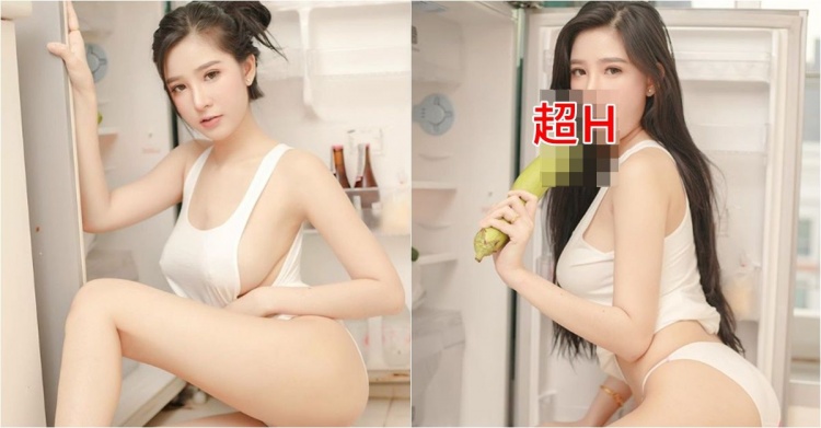巨胸妹子開冰箱找樂子!拿著姊夫就是一個張嘴 瞬間引起網友暴動